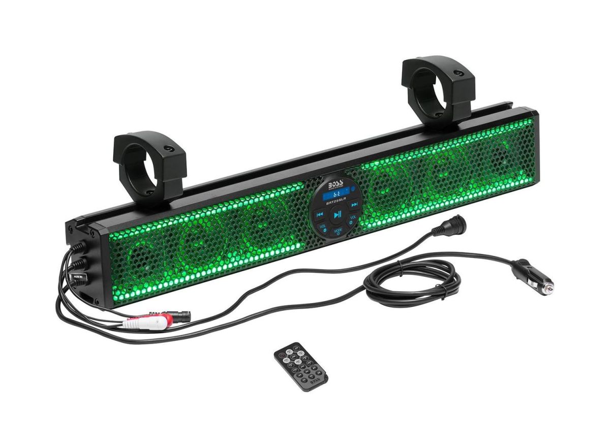 Акустическая панель с системой Bluetooth и встроенным усилителем класса А/В. Через соединение Bluetooth можно передавать звук с мобильного телефона, можно воспроизводить звук с MP3-плеера через разъем AUX 3,5 мм, а также читать музыкальные файлы через порт USB с флеш накопителей. Выходы RCA позволяют расширить систему и выводить звук на внешний усилитель или активные колонки. В панель встроена светодиодная подсветка, которая управляется с помощью пульта дистанционного управления. Система изготовлена из ударопрочного пластика, степень защиты от воды IPX5. Диаметр крепления под трубу от 44 до 50 мм