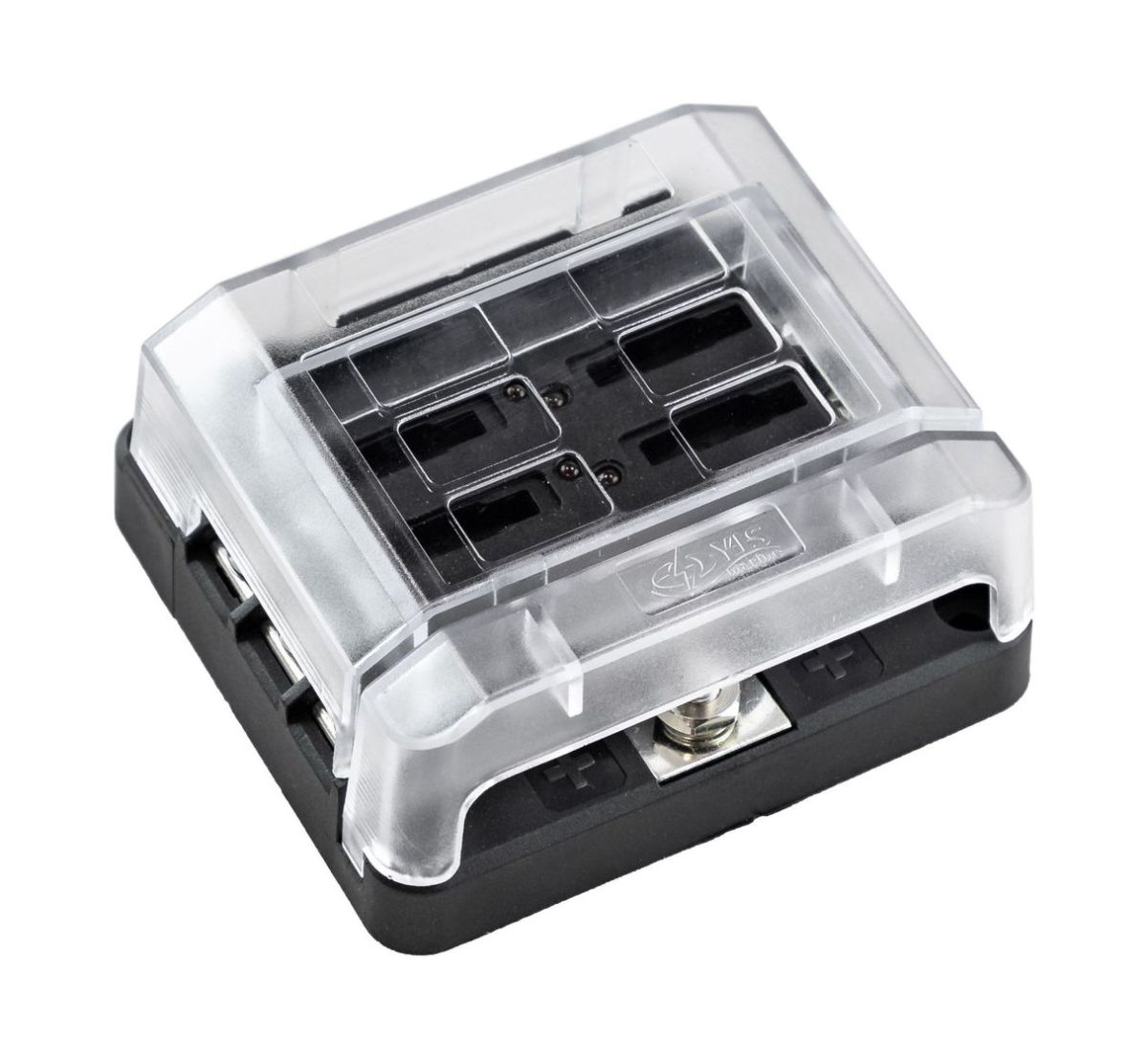 Предохранительный блок на шесть плавких вставок (плюс две запасные). Оснащен светодиодной индикацией неисправности предохранителя. Основание панели изготовлено из армированного нейлона.