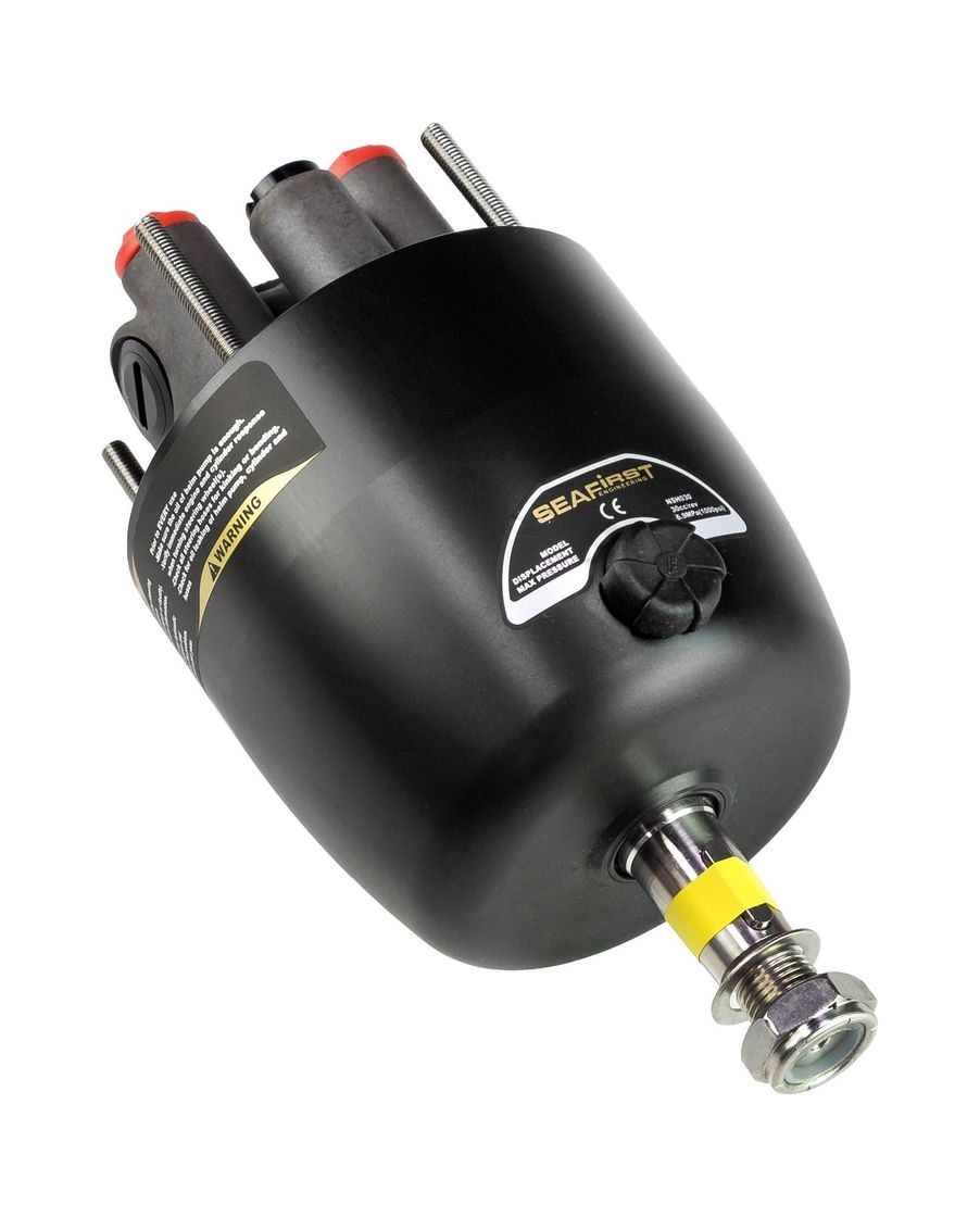Рулевой насос с запорным клапаном, который исключает обратную связь и фиксирует подвесной мотор в заданном положении. Три опорных подшипника, что позволяет использовать в тяжелых условиях эксплантации. Вал рулевого колеса из нержавеющей стали (AISI 304). Установочный комплект насоса в комплекте. Дополнительные порты для подключения второго поста или гидроусилителя на насосе.