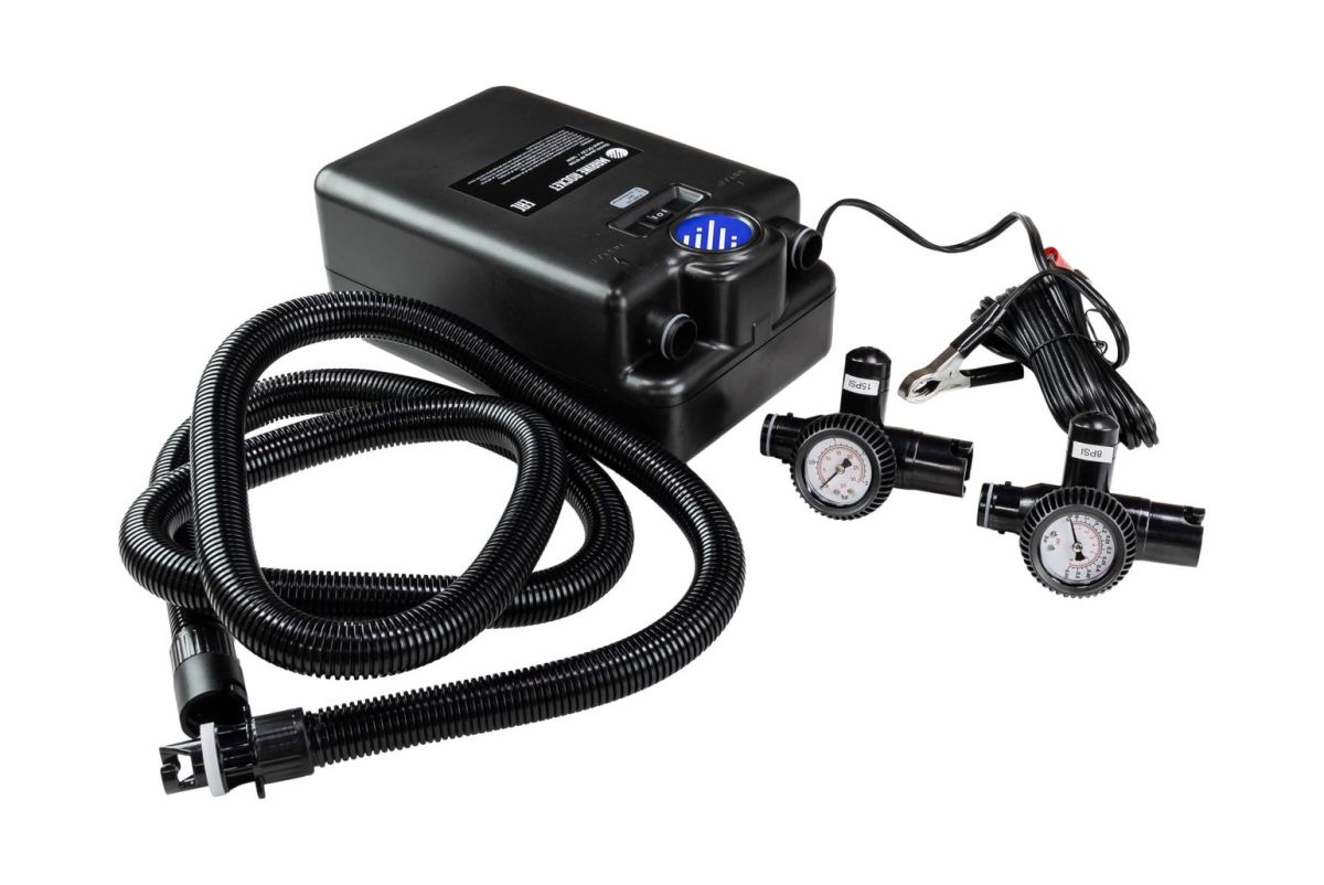 Насос высокого давления 15 PSI с двумя ступенями. Производительность первой 230 литров в минуту. Оснащён двумя манометрами 1 и 0,55 бар. Сумка для переноски в комплекте. Предназначен для быстрой накачки надувных лодок. Данный насос позволяет ускорить процесс складывания лодки, достаточно переставить шланг из выпускного отверстия насоса во впускное, и включить питание. Внимание! Насос не имеет функции автоматического отключения. Во время работы насоса необходимо следить за давлением, созданным в накачиваемом изделии с помощью манометра. Подключение к аккумуляторной батареи осуществляется с помощью проводов с зажимами (тип "крокодилы"), длина провода 5 метров.
