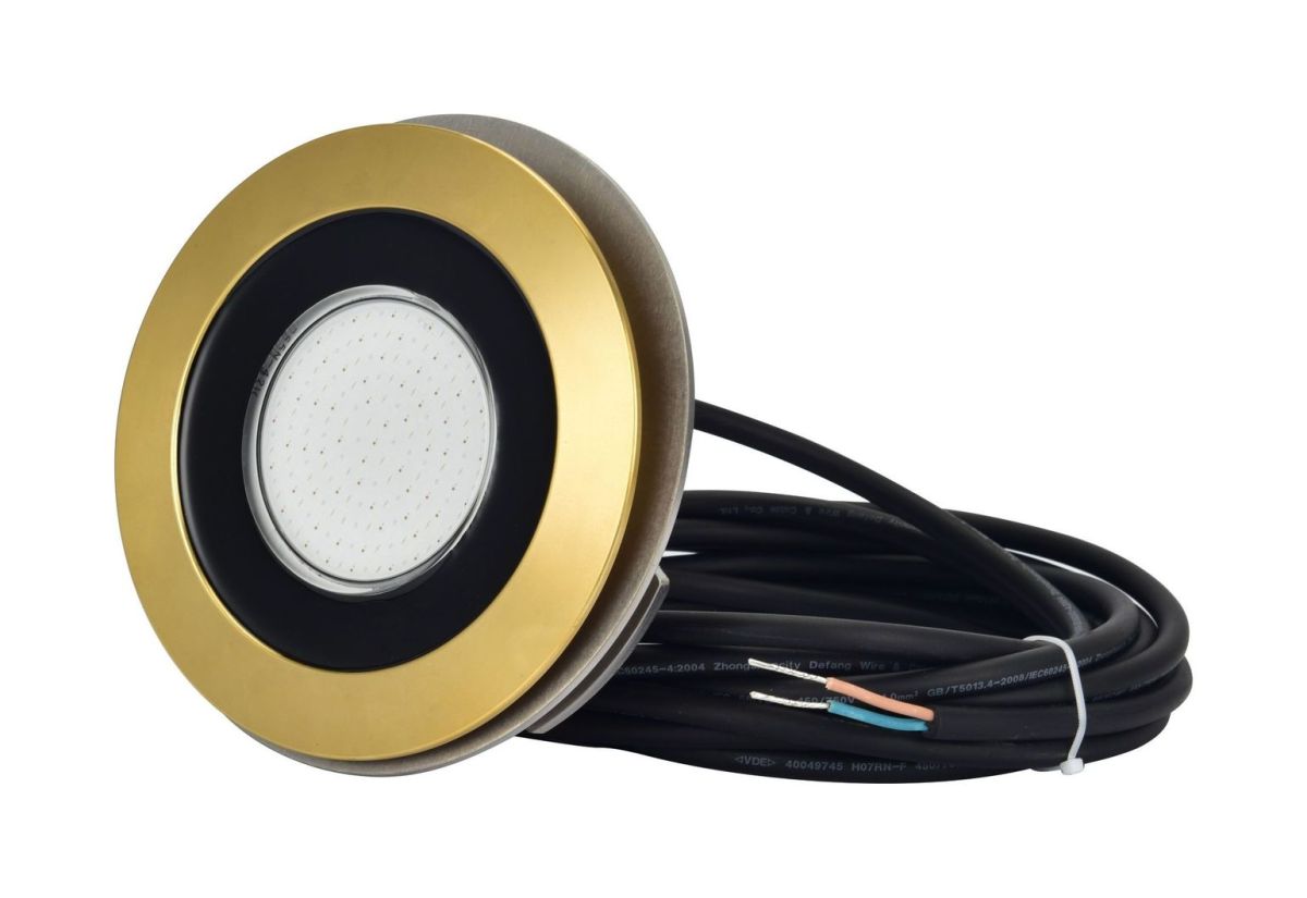 Герметичный огонь для подводного освещения катера или лодки. Бронзовый корпус, закаленное стекло, мощный светодиод COB LED, 9-32 В, 60 Вт. Цвет свечения - синий.