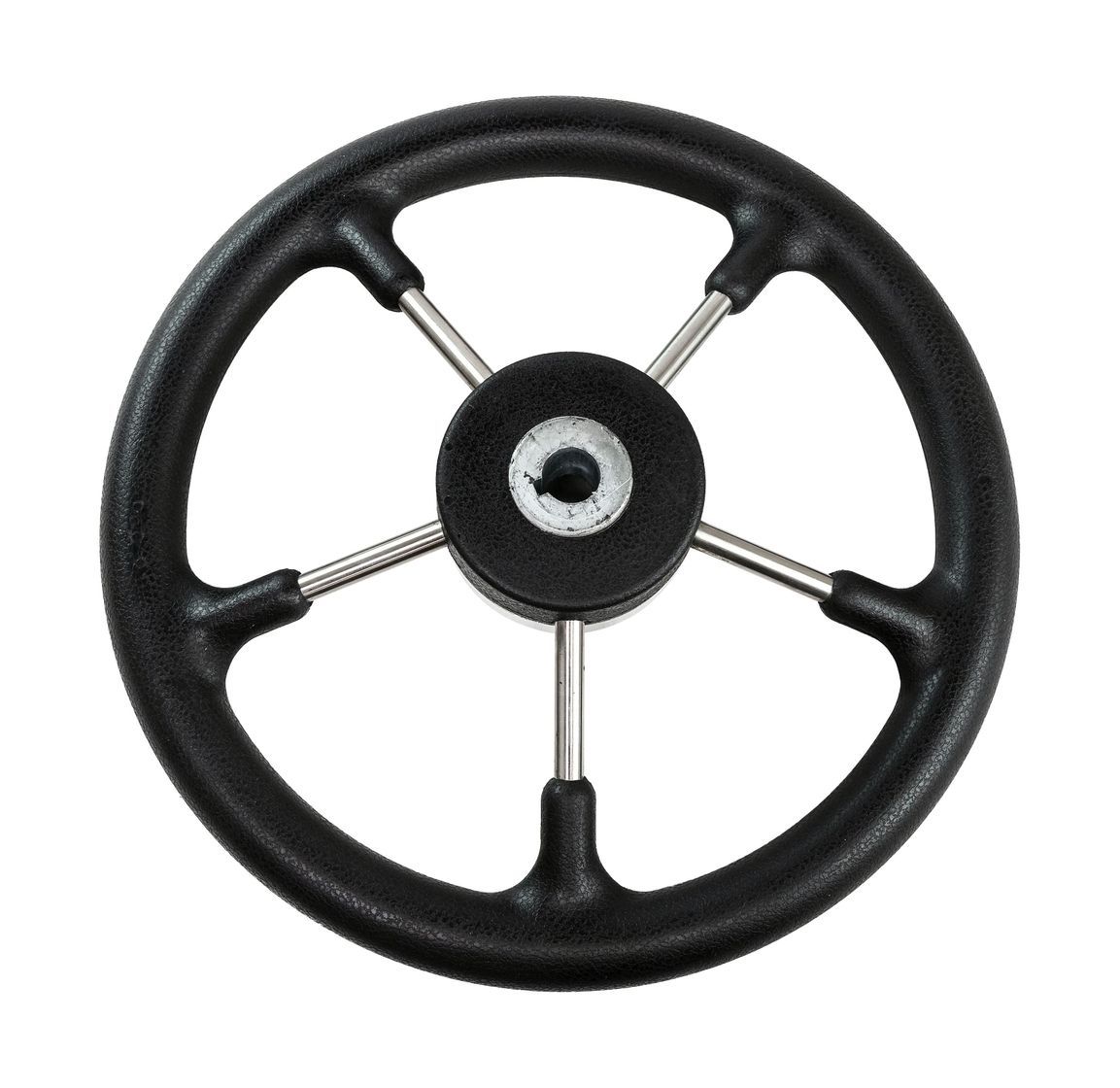 Рулевое колесо, стандартная шпоночная посадка на конус. Подходит для большинства рулевых редукторов. Характеристики Цвет черный Обод, материал полиуретан Спицы, материал нержавеющая сталь